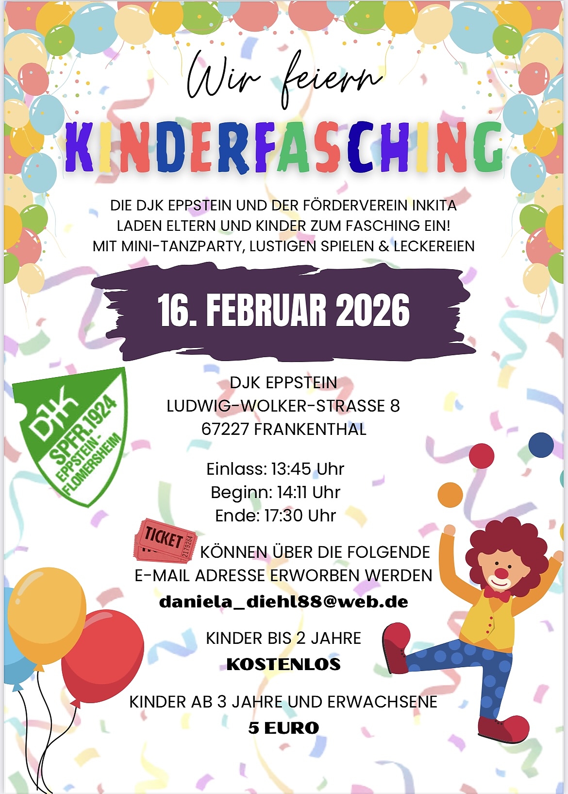 Gemeinsam mit dem Förderverein "INKITA" der Integrativen Kindertagesstätte Eppstein laden wir zum Kinderfasching am Montag, den 16. Februar 2026 ein.
