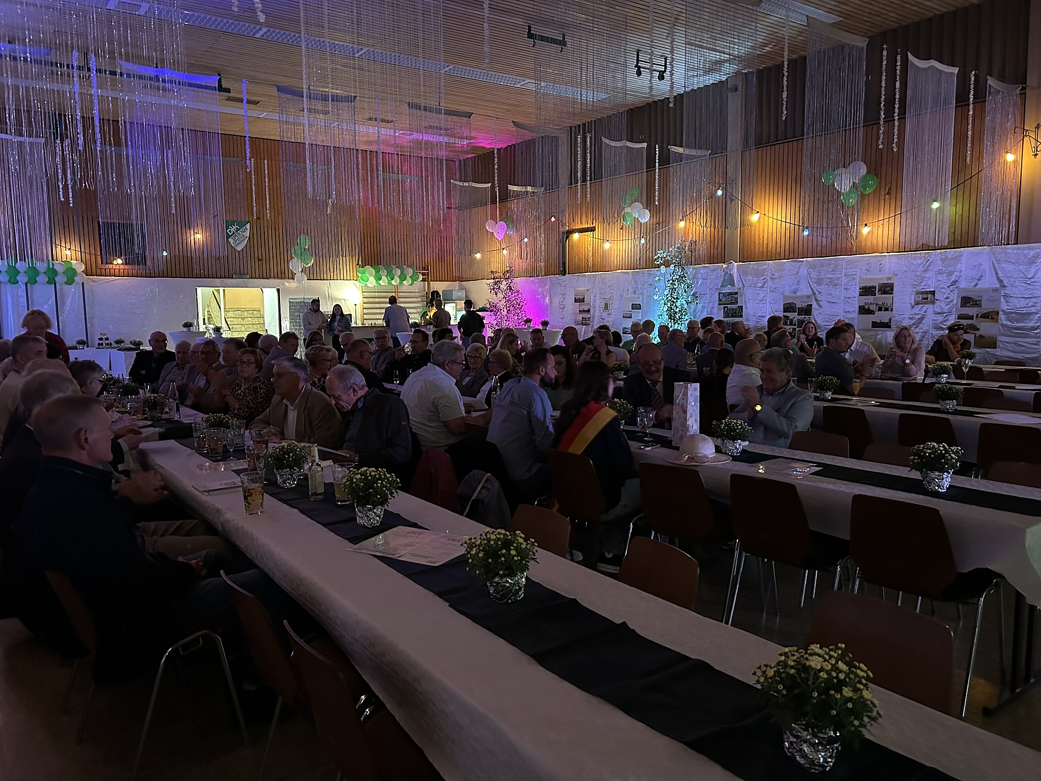 Der Höhepunkt unseres 100-jährigen Vereinsjubiläums startete vergangenen Freitag mit dem Jubilarsabend. Den ersten Teil des Festakt-Wochenendes mit Sektempfang und einem leckeren Fingerfood-Buffet eröffnete die Organisatorin, Alexandra Denu, zusammen mit der Band „Reezling“, die musikalisch durch den Abend führte. Die offizielle Begrüßung mit Totenehrung übernahm unser 1. Vereinsvorsitzende Peter Maischein. Aufgrund der Coronajahre erfolgten im Anschluss sämtliche Ehrungen für die Jahre 2020 – 2025.